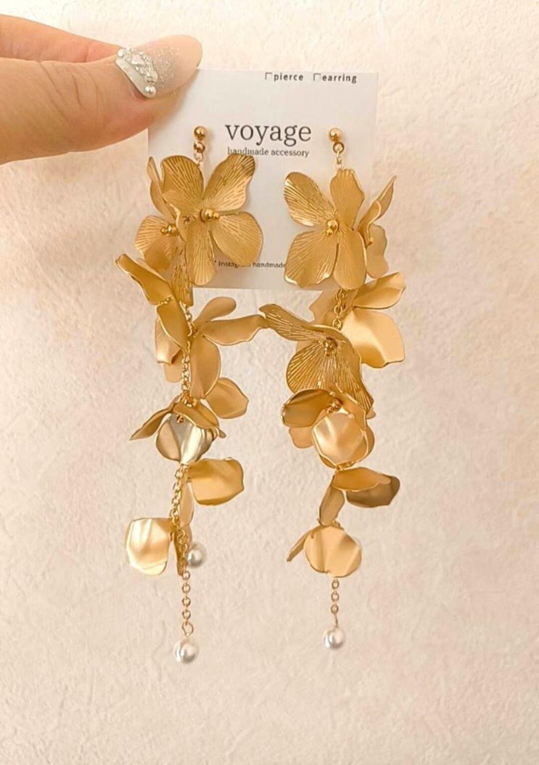 ゴールドの花びらとパールを組み合わせた繊細で大人可愛いデザインになります。