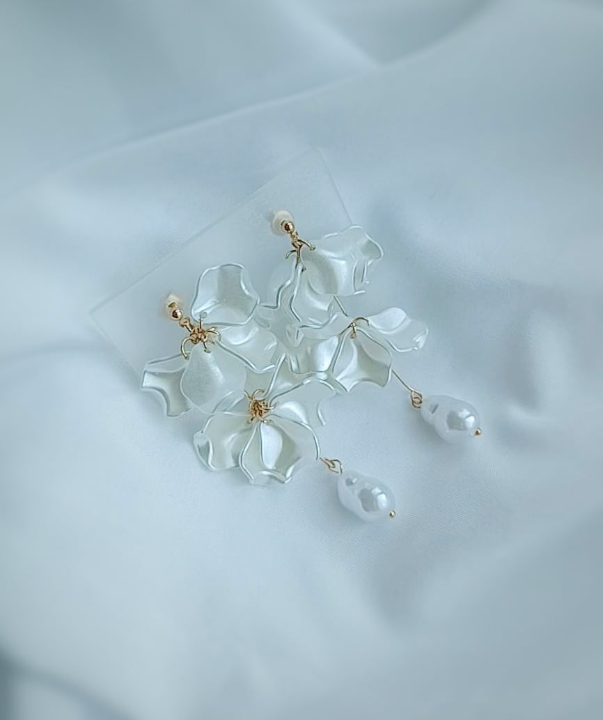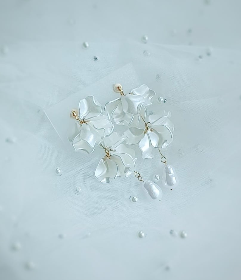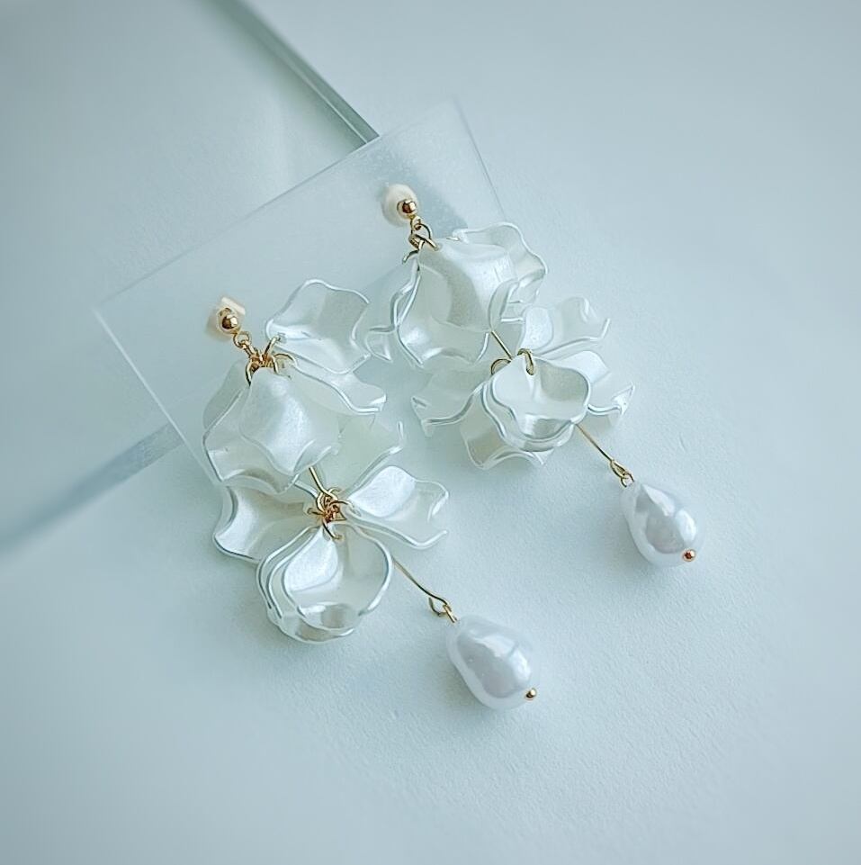 こちらはホワイトフラワーとパールを組み合わせた華やかでエレガントなデザインになります。