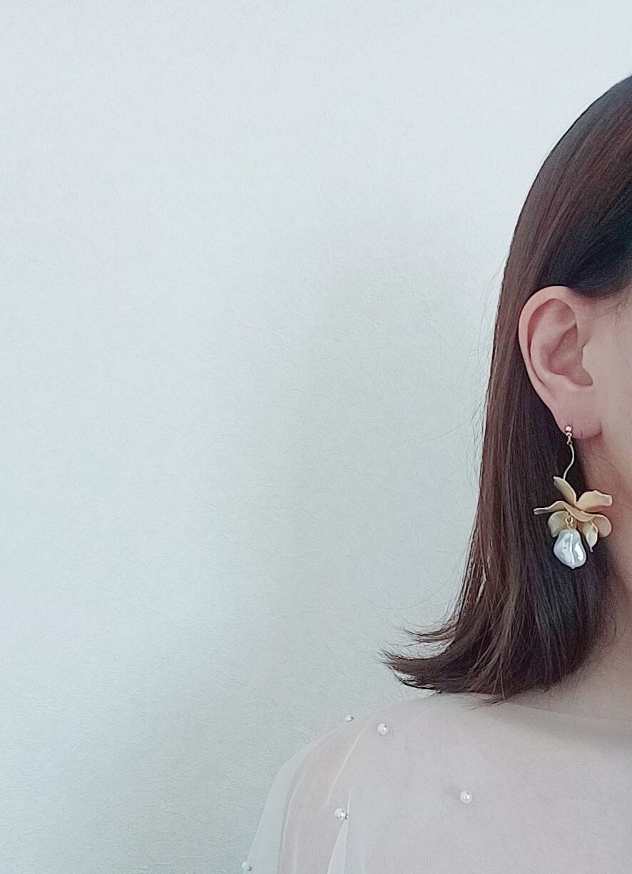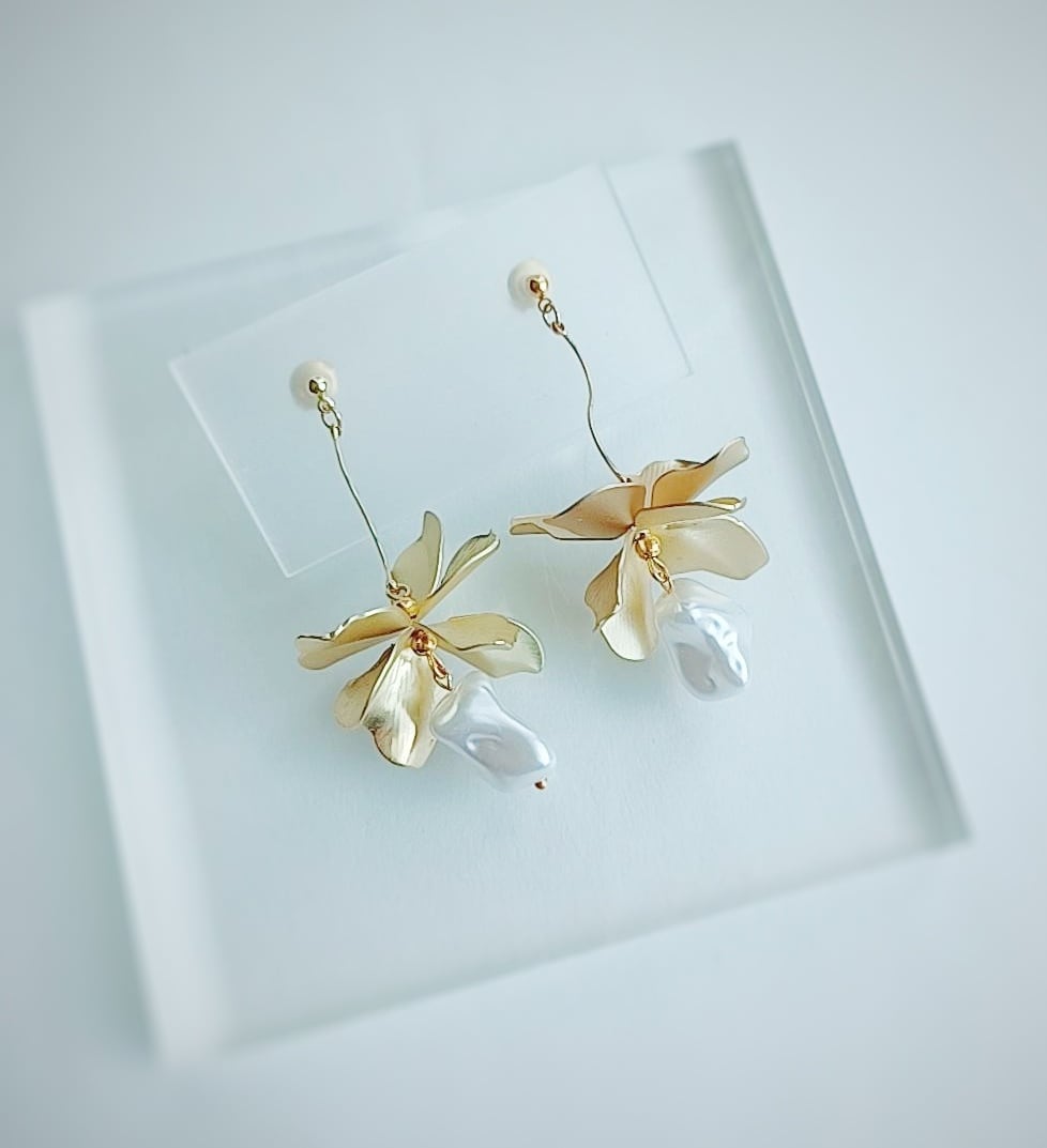 こちらはマットゴールドカラーの花びらにパールを組み合わせた大人可愛いデザインになります。