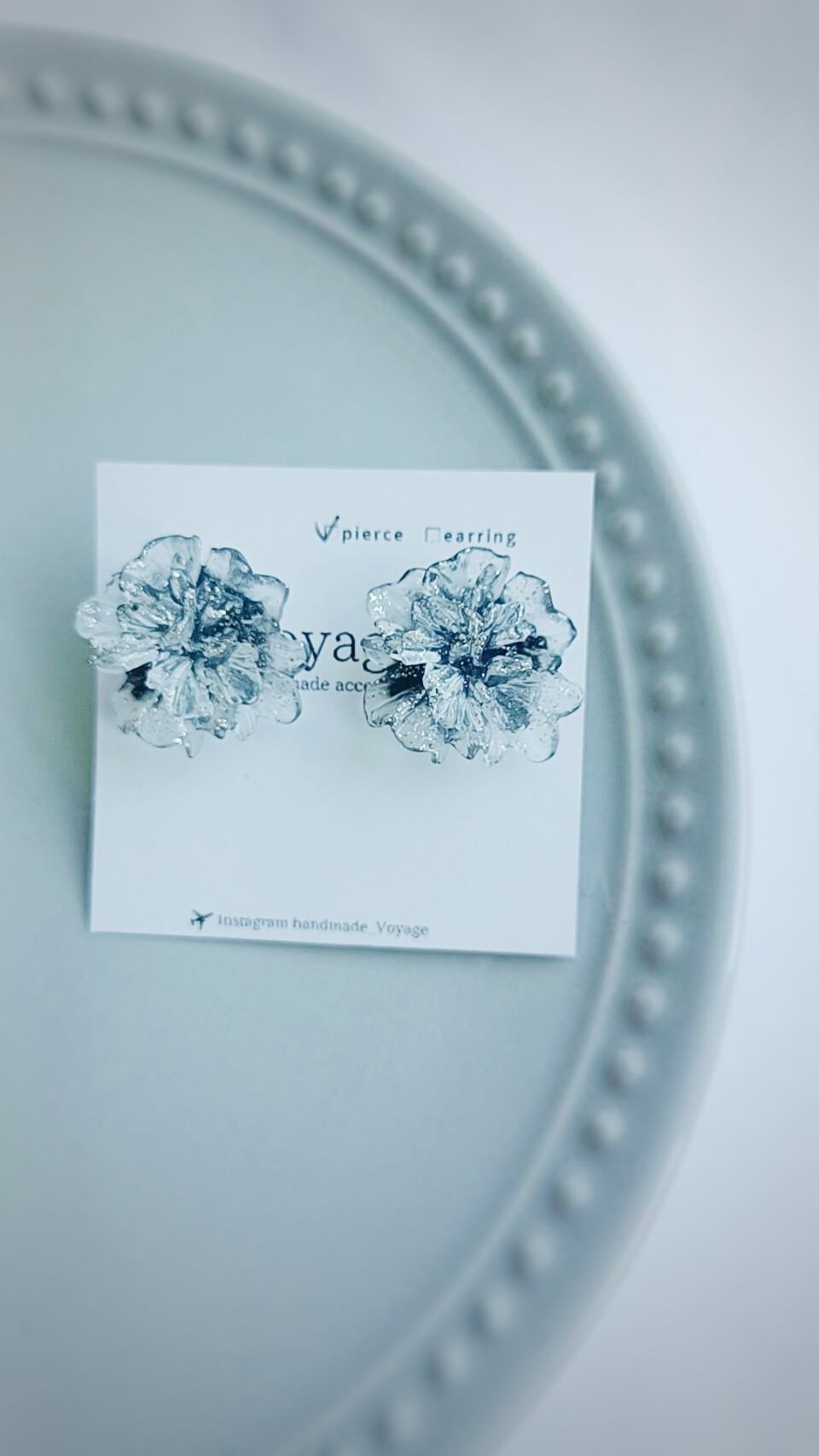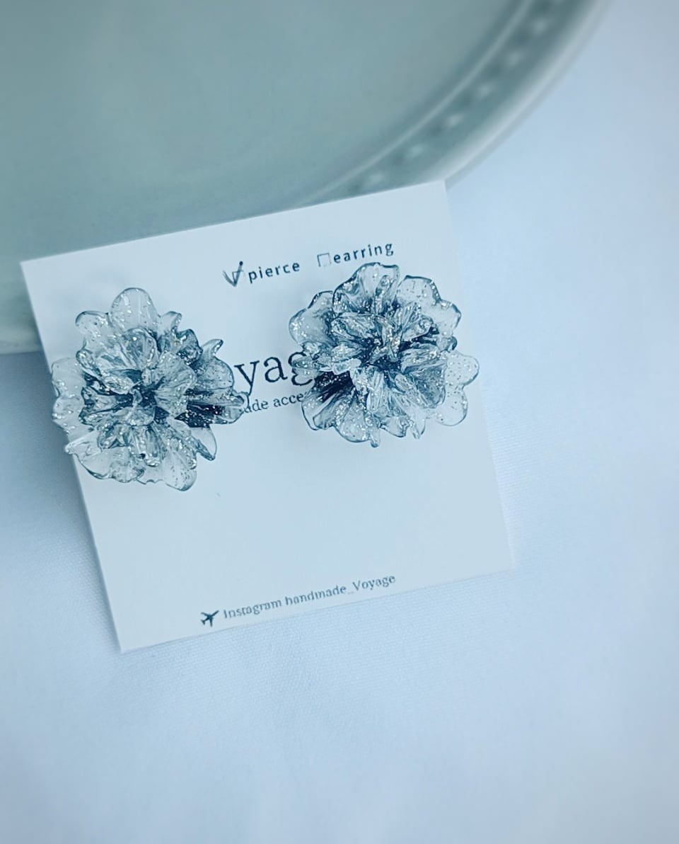 こちらはくしゅっとギャザーを寄せたような、カーネーション型のクリア×ブラックカラーのカボションになります。