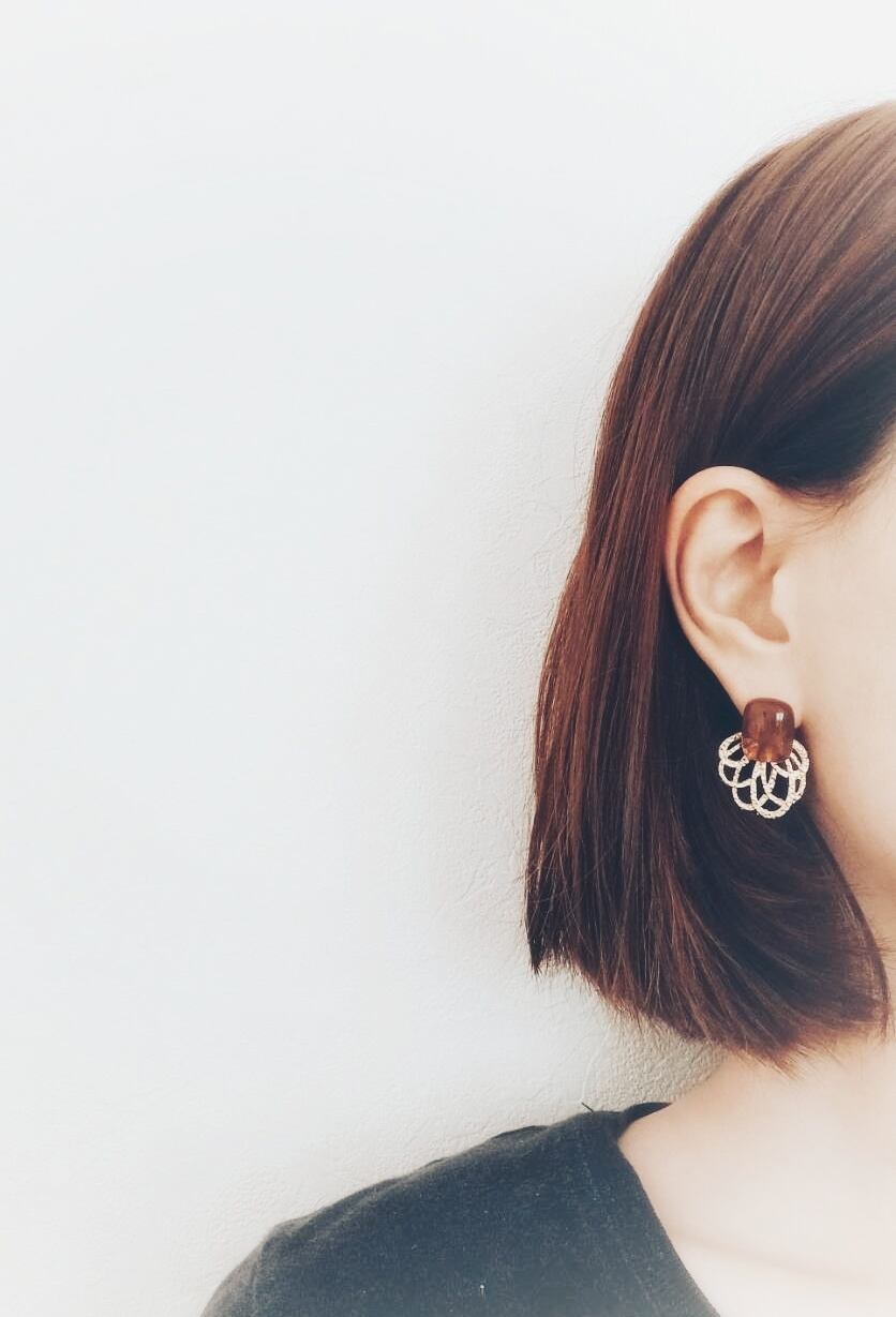 マーブル カボションに、フラワーゴールドチャーム を付けたハンドメイドピアスです♡