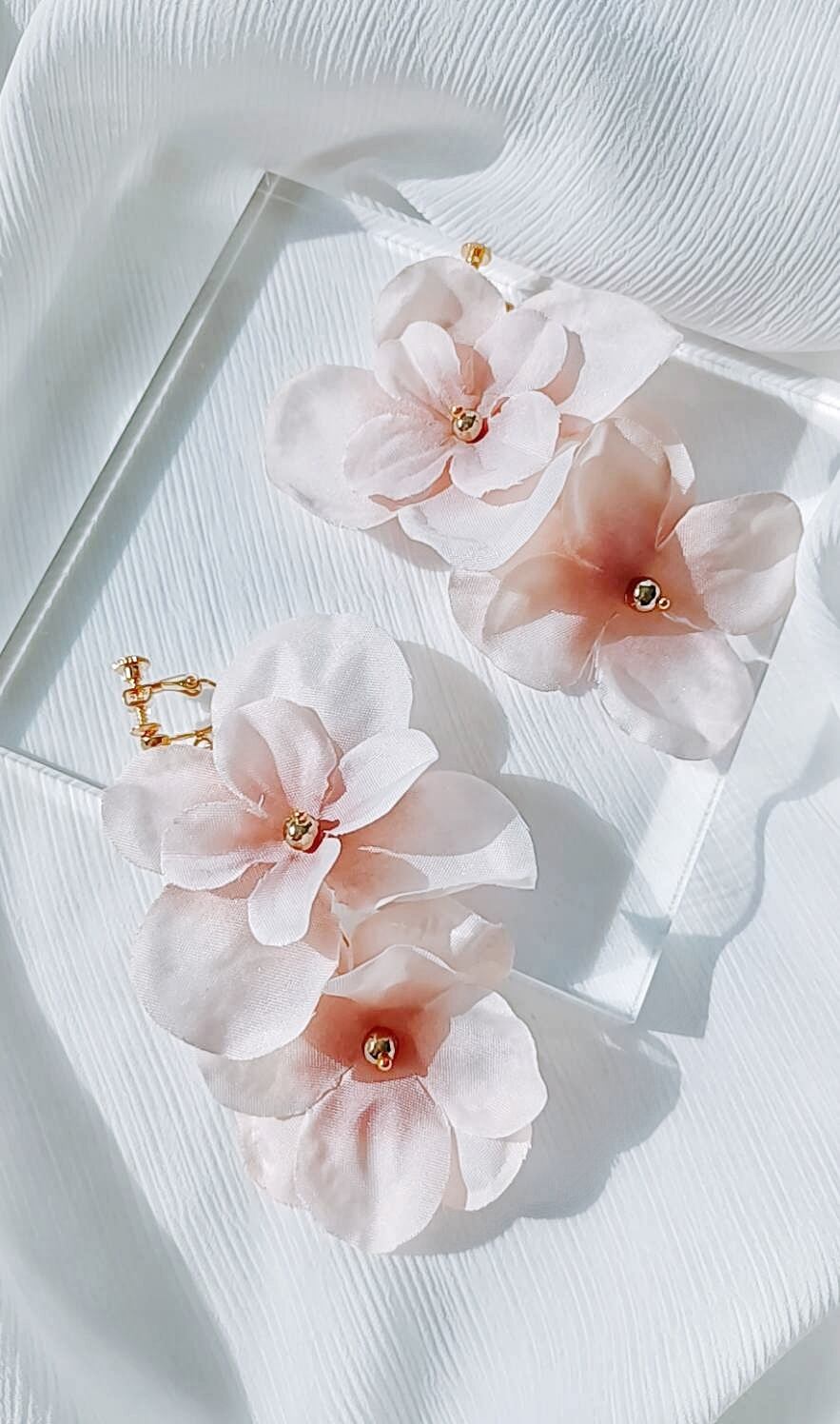 こちらは大ぶりの花びらを使用した2連のイヤリングとなっています。