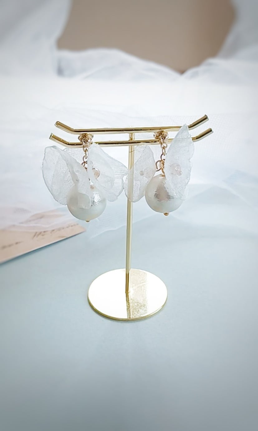 〜ふわふわシフォンとパールの輝き ピアス/イヤリング〜