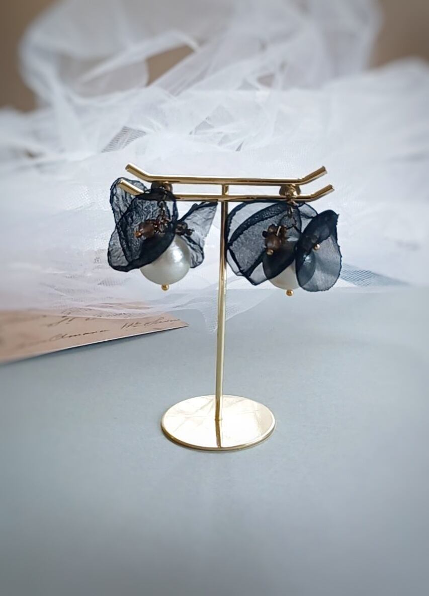 〜ふわふわシフォンとパールの輝き ピアス/イヤリング〜