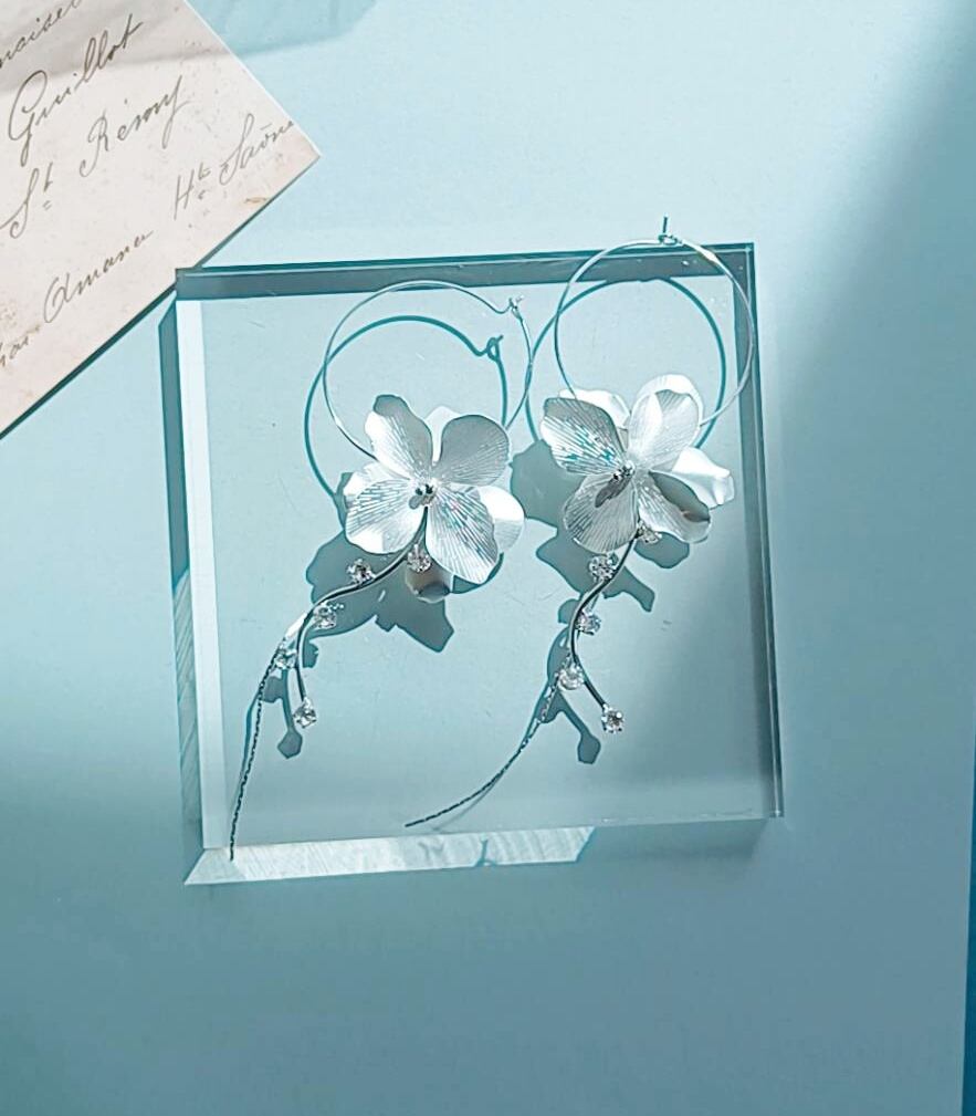 マットシルバーの花びら2枚にフープを組み合わせた2wayデザインになります。