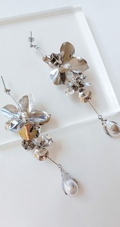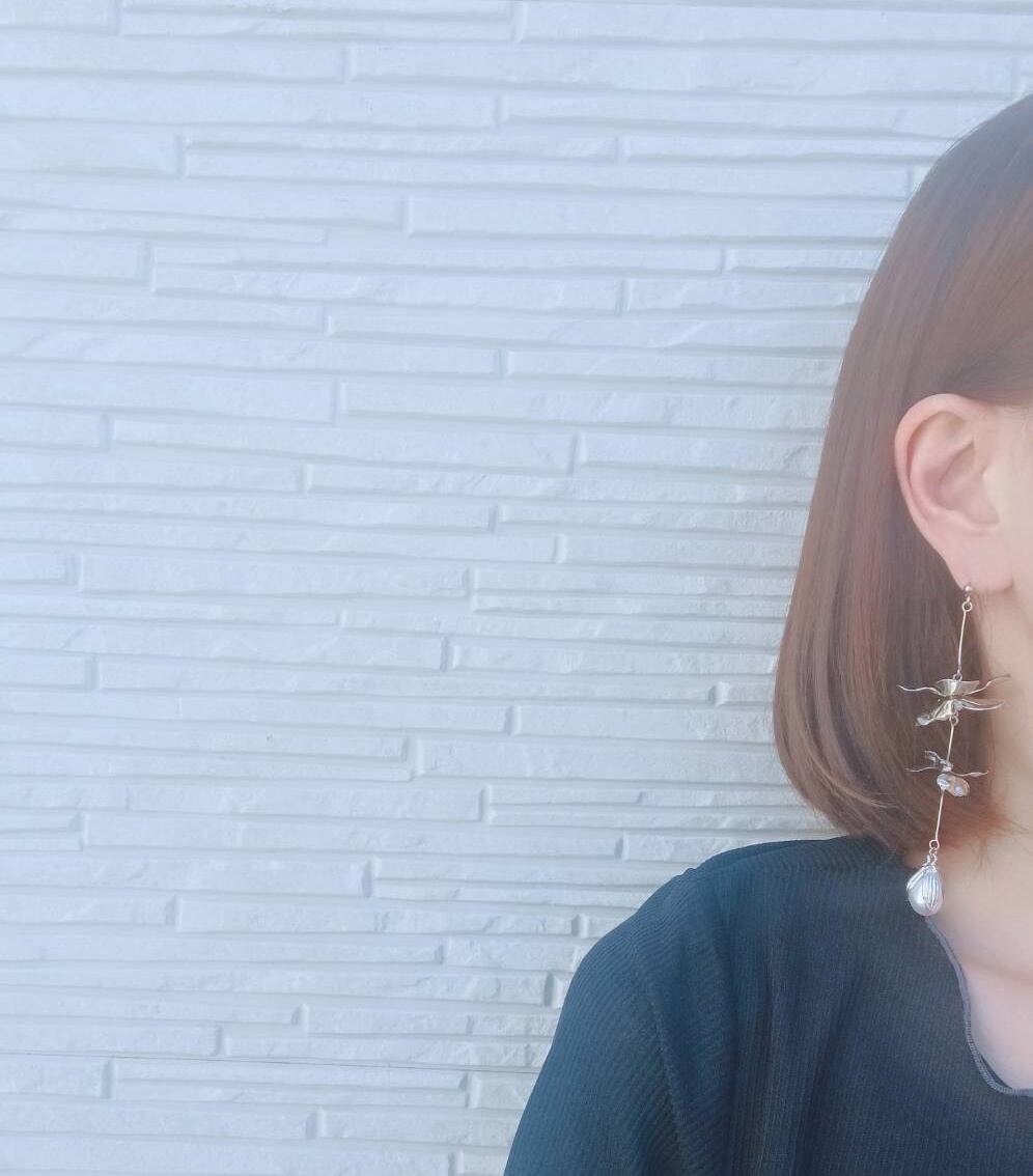 シルバーの花びらに淡水パールとつぼみパーツを組み合わせた大人可愛いデザインになります。