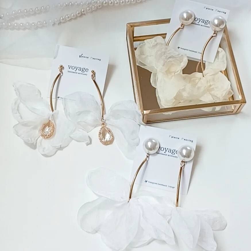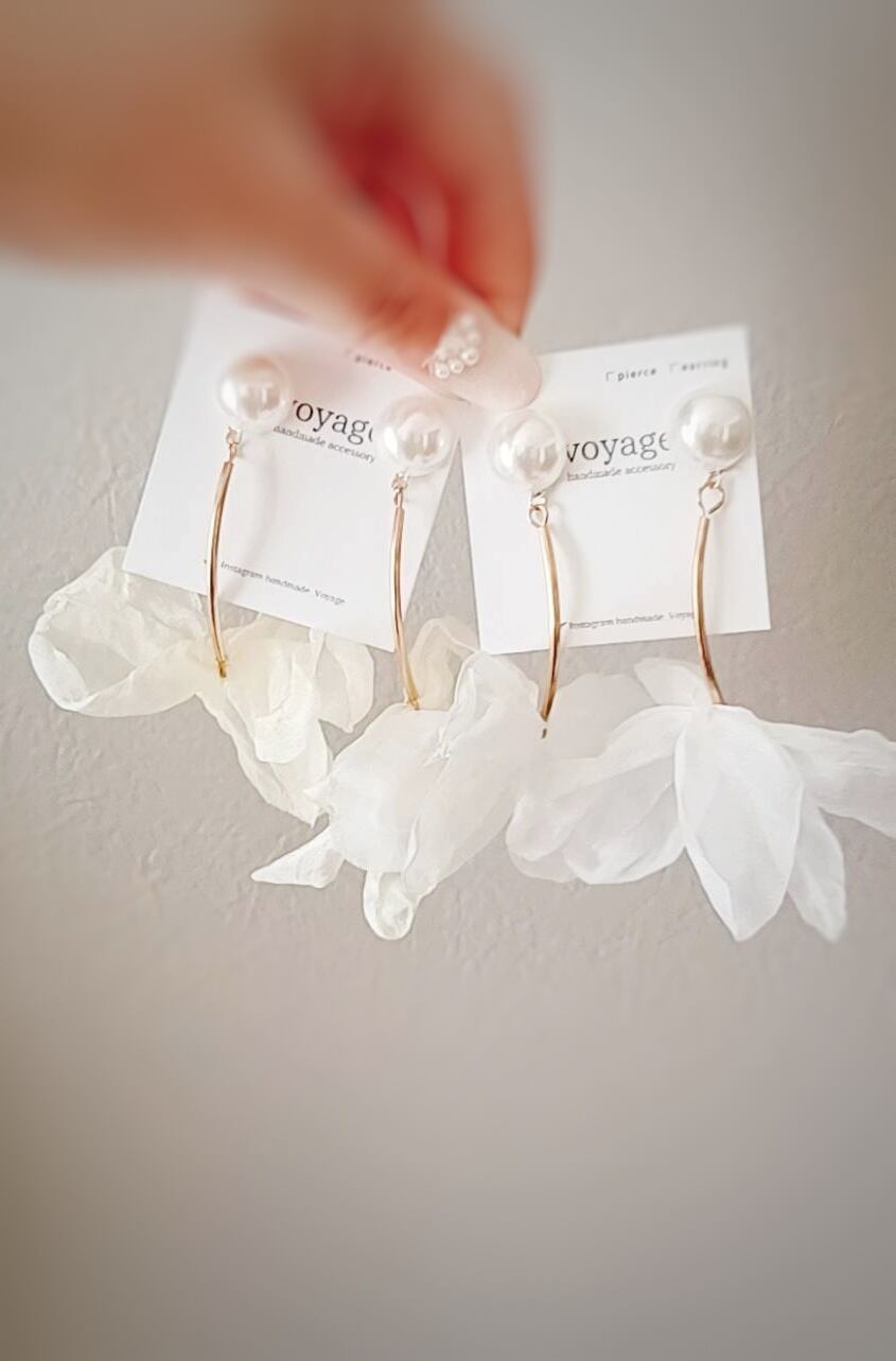 〜ふわふわシフォン&パール ピアス/ イヤリング〜