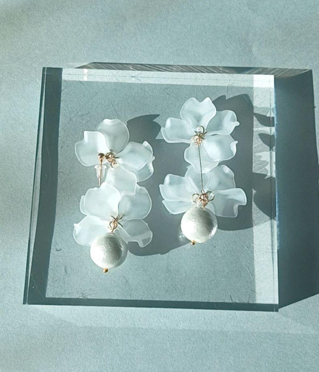 〜すりガラス 花びら × パール ピアス/イヤリング〜