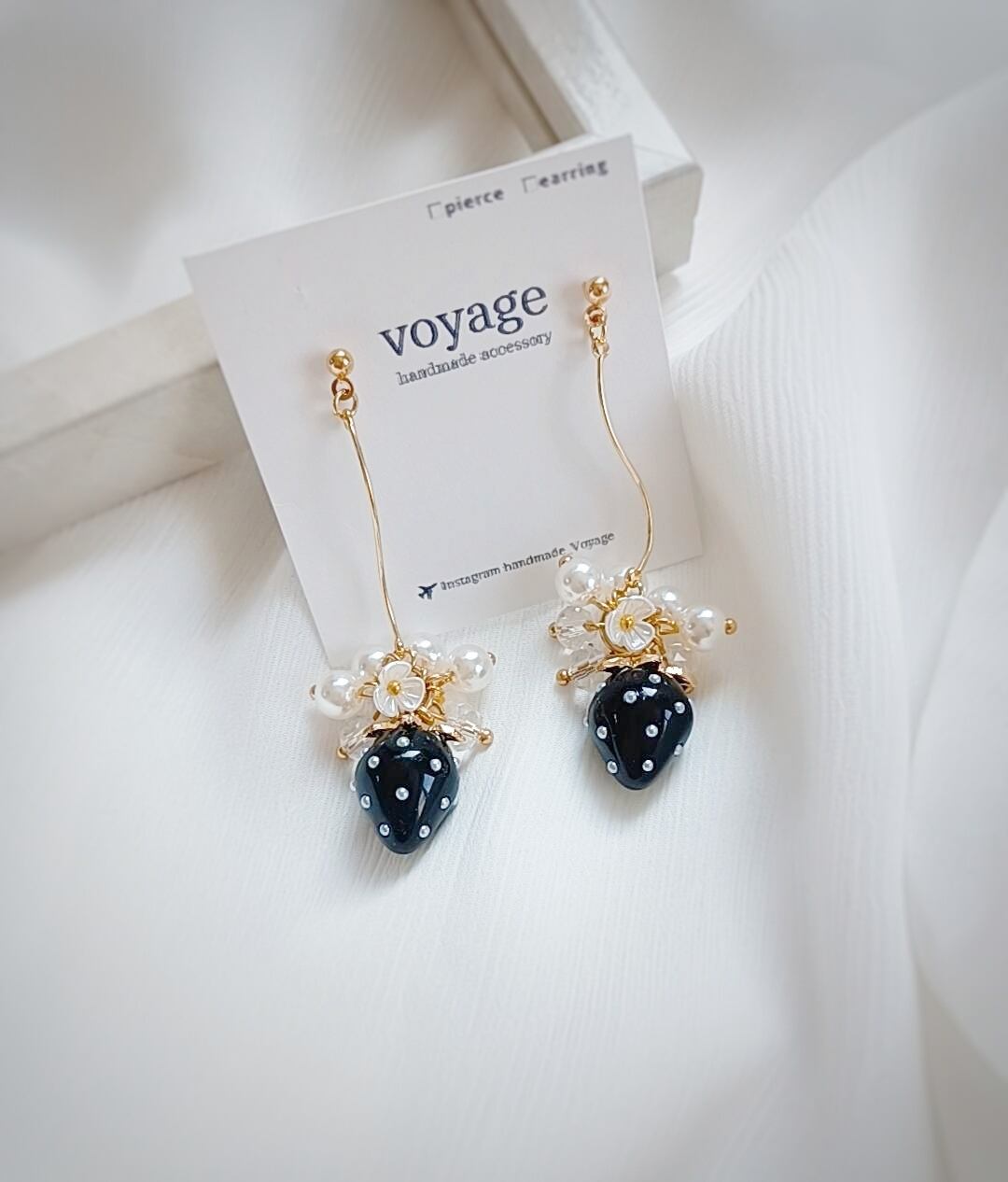 〜 black strawberry × flower & perl pierce/イヤリング〜