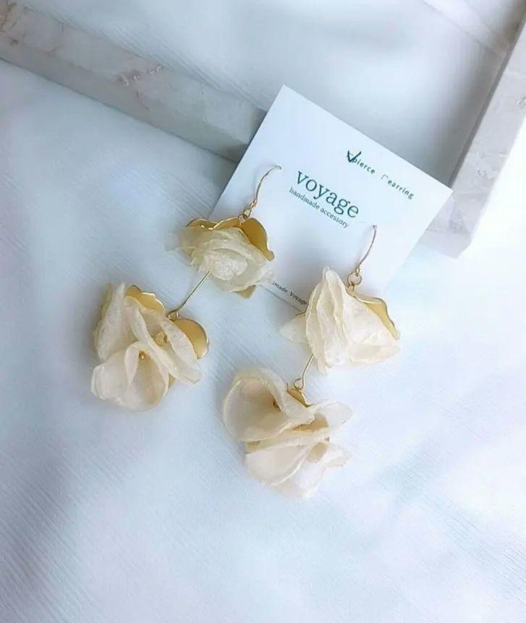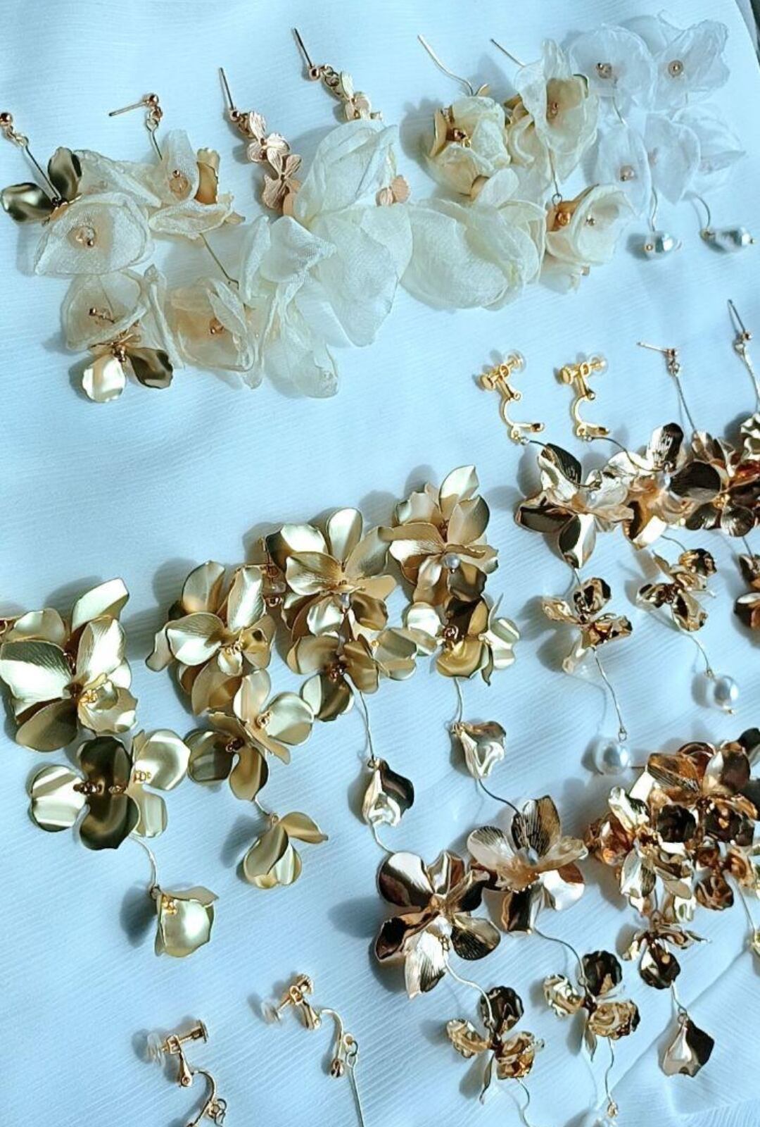 こちらはふわふわのシフォンとマットゴールドの花びらを組み合わせた可愛らしいデザインになります。