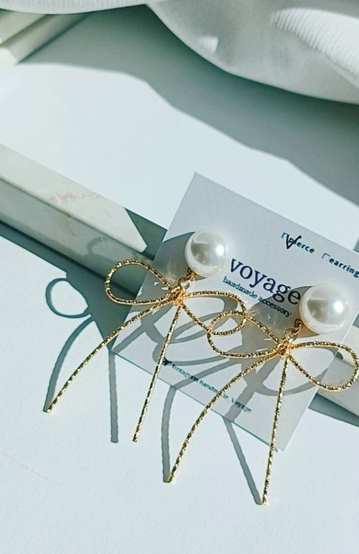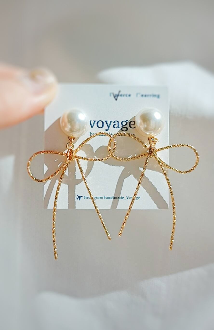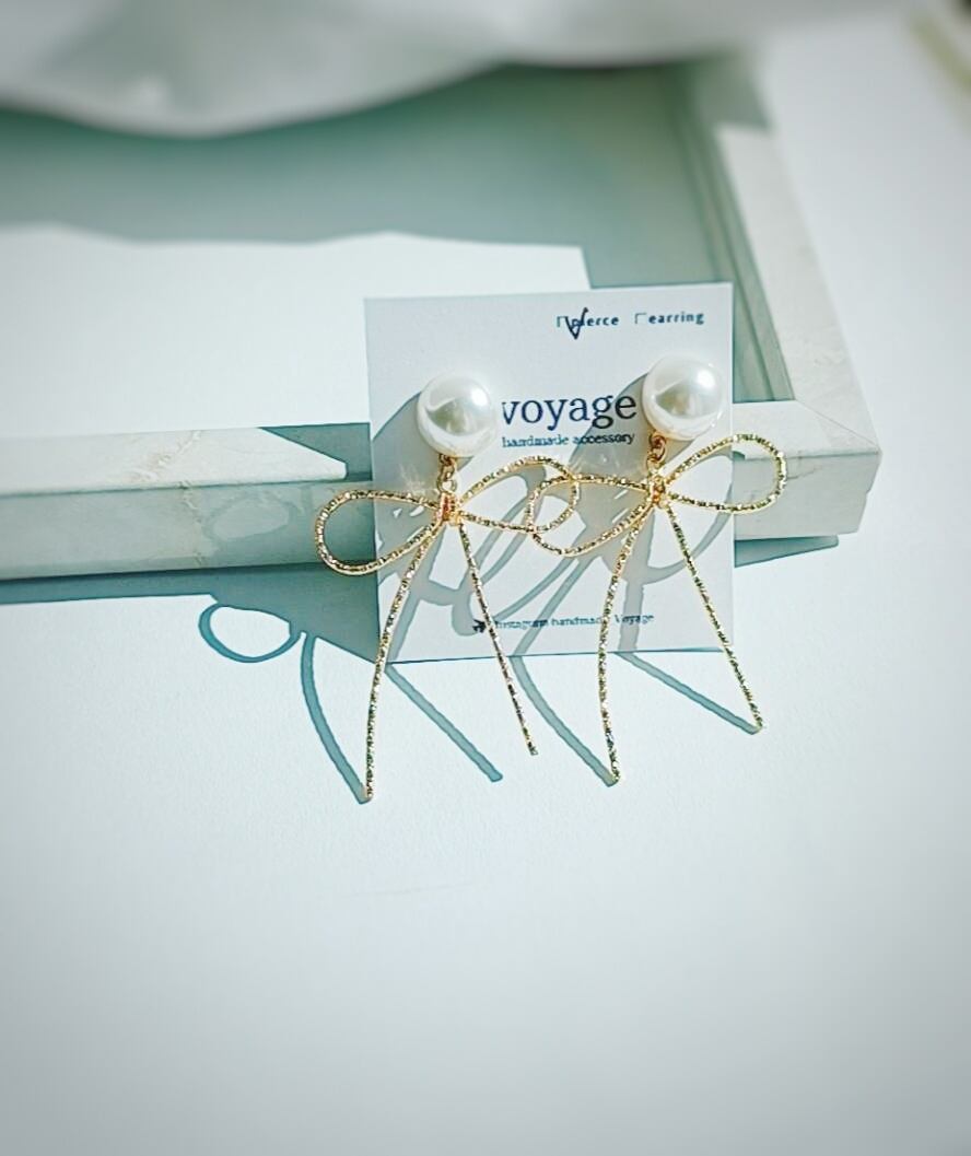 〜 gold ribbon × perl pierce/earring 〜