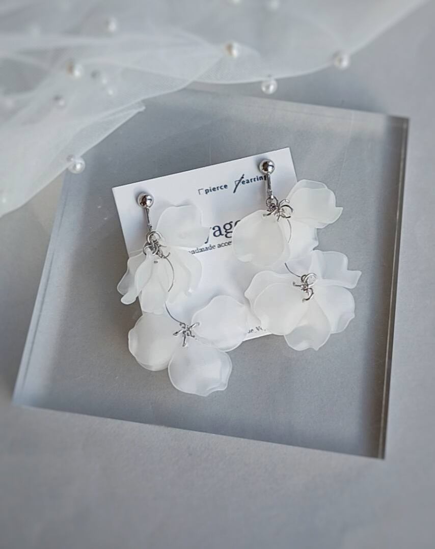 〜 すりガラス風 花びら × シルバー ピアス/イヤリング 〜